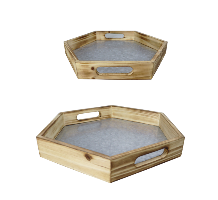 2pc Hexagon Shaped Wooden Serving Tray