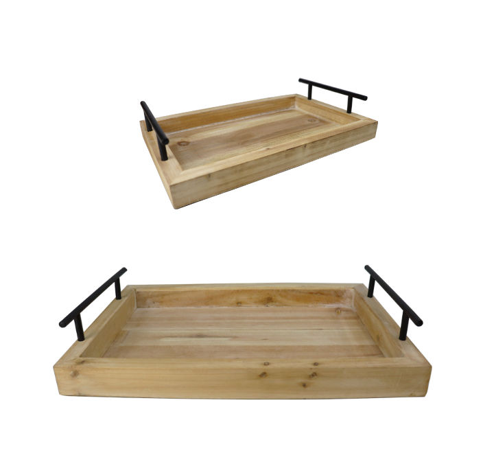 2pc Wooden Serving Tray Black Handles