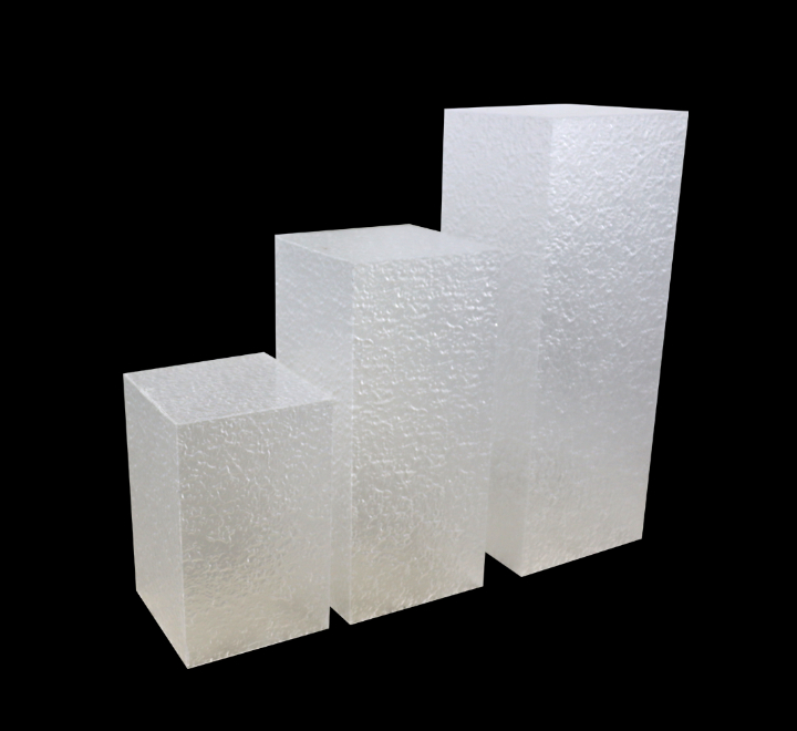This stunning 3pc acrylic plinth set exudes a modern and minimalist aesthetic and offers excellent stability and surface area to display any item. It is the perfect centerpiece for floor displays in retail environments, galleries, exhibitions, special events and so much more.