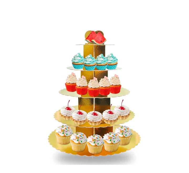 This delicate display stand is great for serving cupcakes, muffins, pastries, desserts, fruits, and party treats. It is perfect for baby showers, weddings, parties, bakeries and catering events.