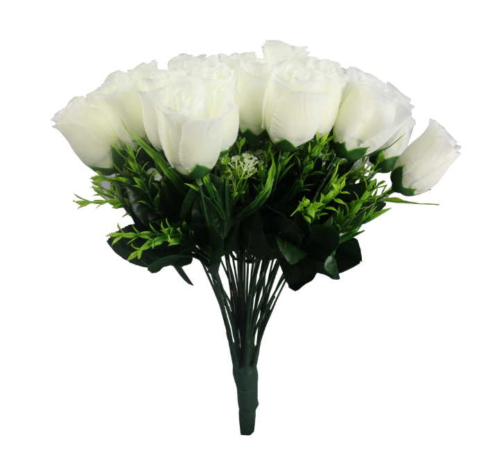 Make a statement with this premium artificial white rose bouquet, featuring 43 roses in crisp white tones with natural green accents for a lush, full arrangement. Perfect for bridal bouquets, elegant centrepieces, or refined home décor, it offers timeless beauty without the upkeep.
