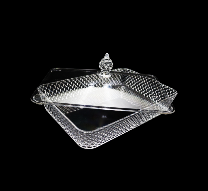 Beautiful acrylic serving trays with lid. Can be used for serving desserts and savoury dishes. Perfect for displays, catering and buffets.