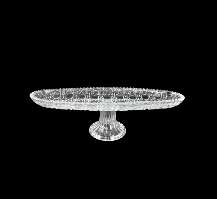 Beautiful glass tray on stand with a captivating long oval design that will instantly elevate your tablescape, whether you’re hosting a formal dinner or a casual get-together.