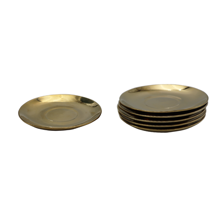 Set includes 6 gold saucers and 6 white cups