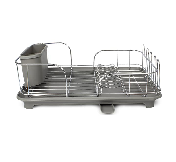 Enhance your countertop with this space-saving chrome-plated rack suitable for compact area. It features space for dish-drying and a plastic drip tray to protect your countertop.