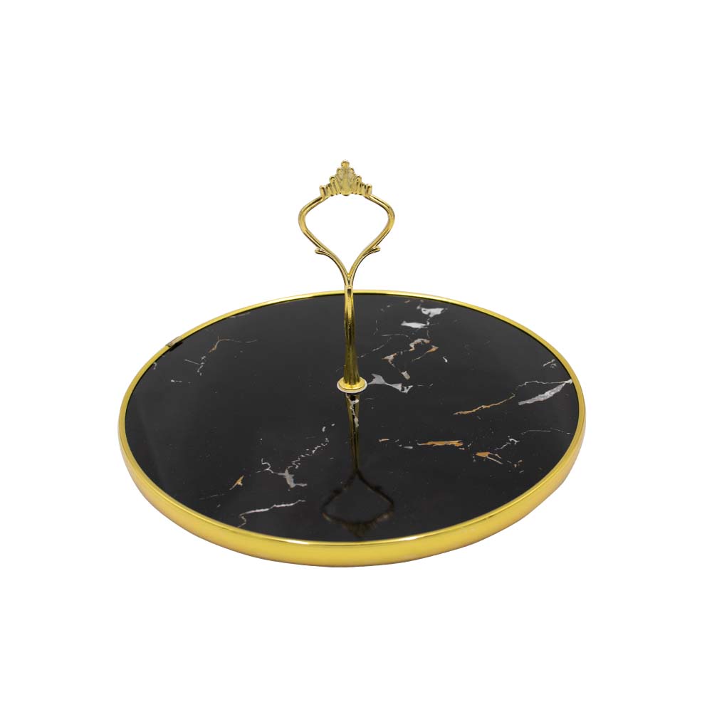Marble look wooden (MDF) tray with gold finish rim and handle