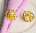 Your guests are sure to be more delighted as you decorate your table setting with this gold flower napkin holder.