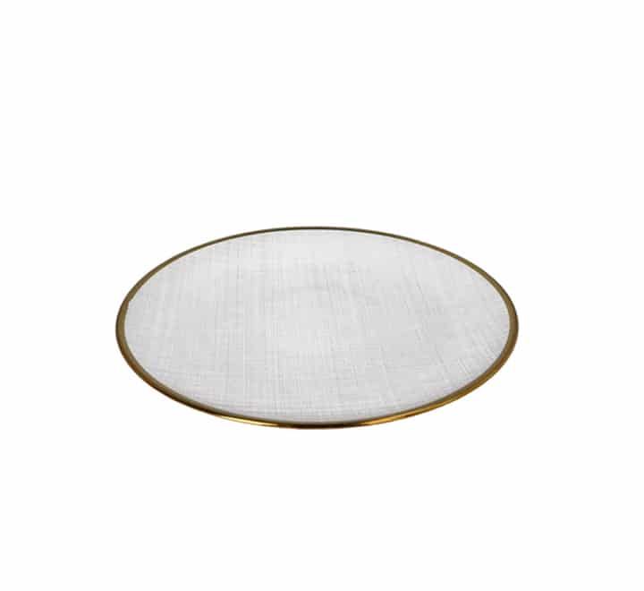 Frosted glass dinner plate with a golden rim
