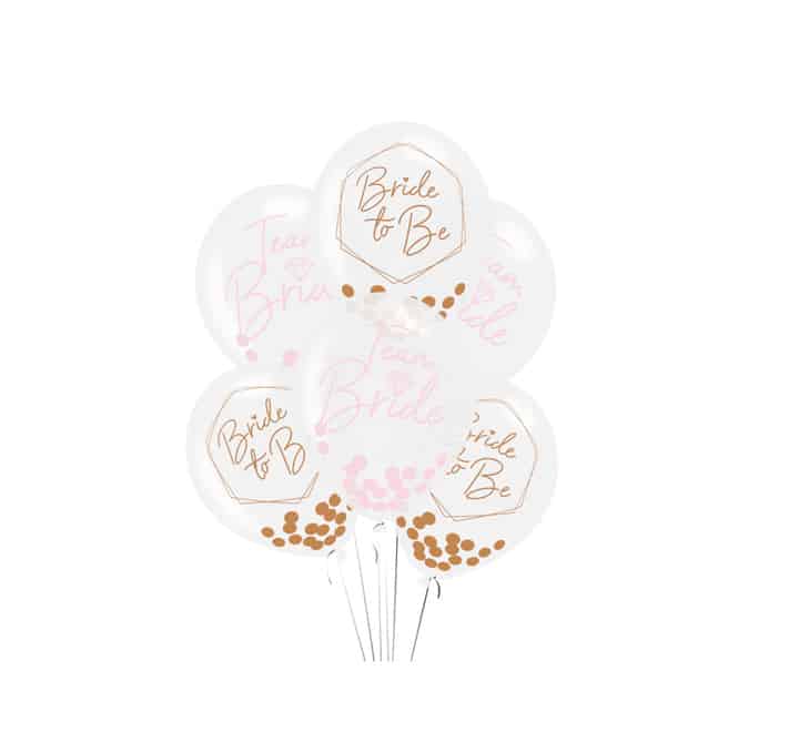 Decorate your hen party or bridal shower with these pretty Team Bride confetti balloons. The balloons come in two coordinating designs: “Team Bride” with pink confetti and “Bride to Be” with rose gold confetti.