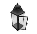 This lantern is perfect to burn your favorite candles, and features sleek lines and clear glass panels that are a great way to add timeless chic to your living space or event. Classic black colour that fits in most decor styles.