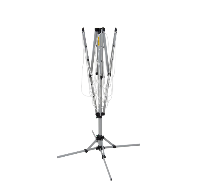 This outdoor clothes drier features multiple arms for hanging clothes, is easy to open and close and provides an efficient and space-saving solution for outdoor laundry drying.
