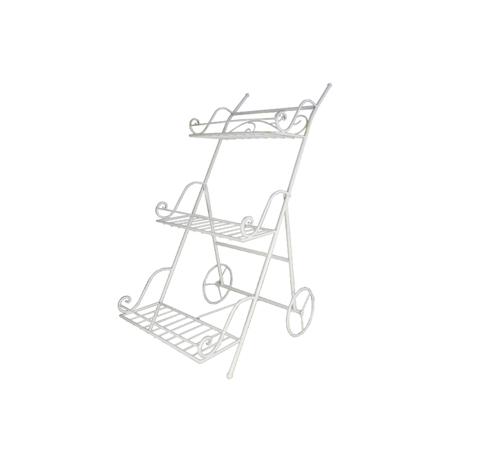 This multi-tiered metal shelf is the perfect decorative accent to any garden party or outdoor event and is suitable for decoratively displaying your knick-knacks.