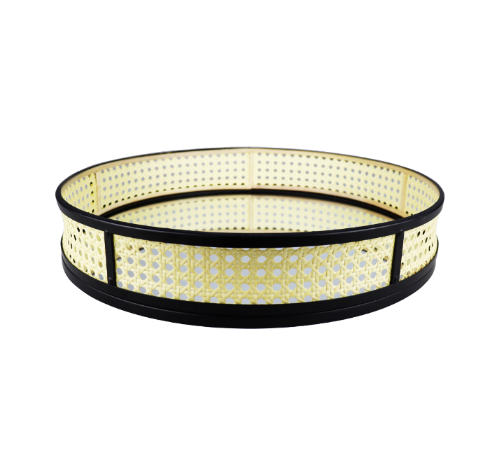 Rattan Mirrored Round Tray