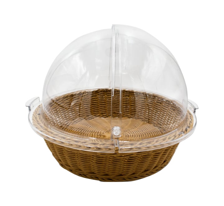Large plastic woven basket with an acrylic clear dome lid