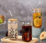 Round Glass Jar with Bamboo Lid and Straw
