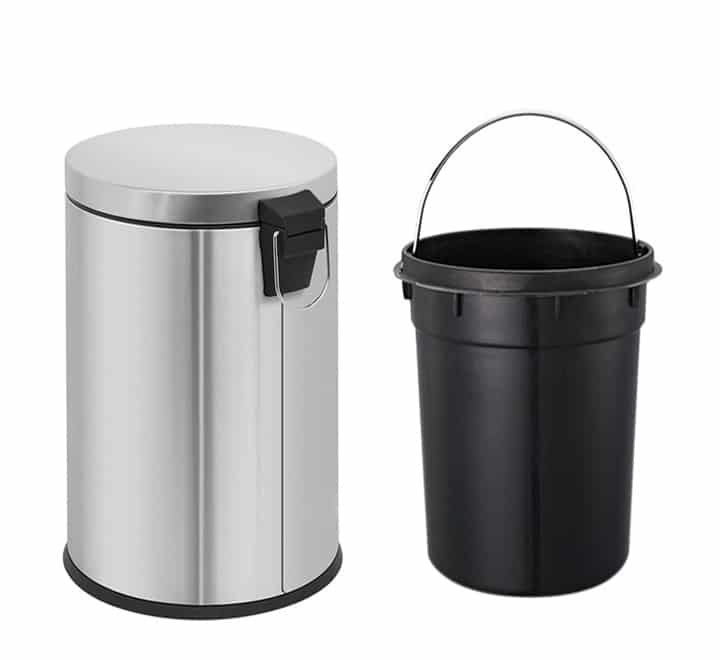 Simple and stylish pedal dustbin with a removable waste bucket, convenient carry handle, non-slip and non-marking base.