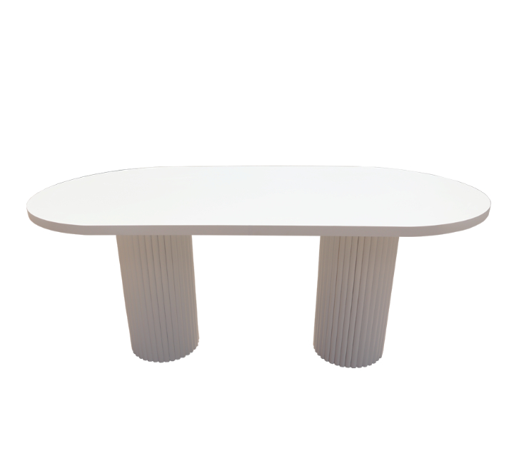 White Oval Ripple Pillar Table 1.8m