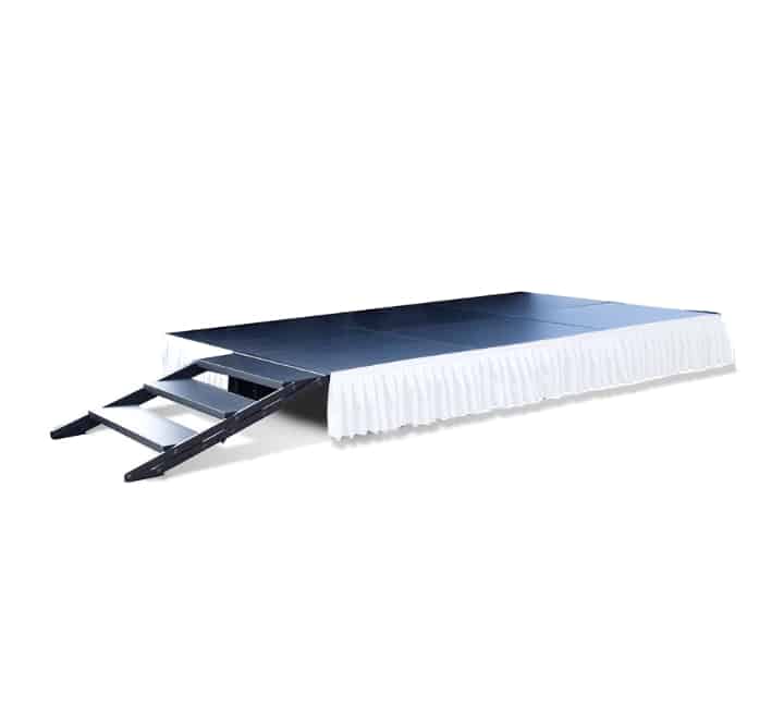 Add the finishing touch to your stage with this stretch fabric platform skirt that will transform your wedding, corporate event stage or performance space. Beautiful pleat box design with a velcro strip making it easy to attach to the stage.