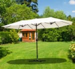 This twin outdoor umbrella has a solid steel central pole that ensures a sturdy structure which keeps upright and in place all day long. It will be a stylish addition to any back deck, garden, patio, or poolside area, perfect for backyard barbecues and summertime soirees.